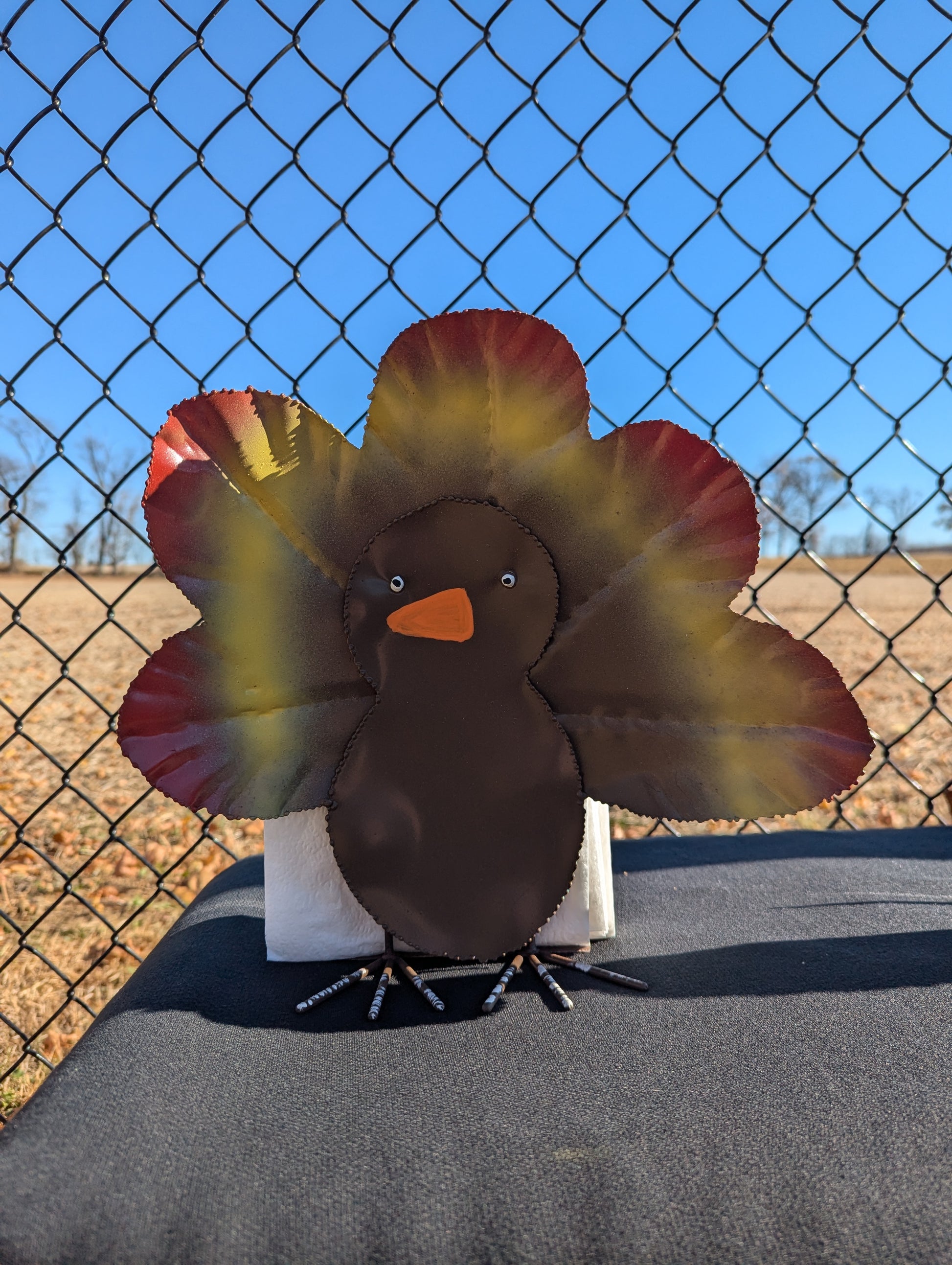 12"x12Enhance your Thanksgiving table setting with our durable Stainless Steel Turkey Napkin Holder. Designed to securely hold napkins up to 12"x12" in size, with 2" of space, this holder adds a touch of elegance to your holiday meal while keeping napkins in place. Enjoy a stress-free, tidy dining experience." with 2" of napkin space